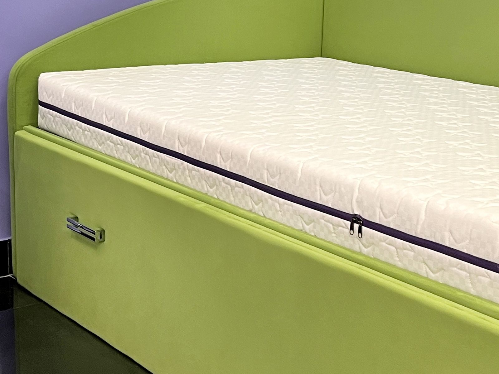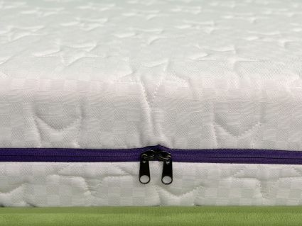 Для пошива чехла используется дышащий хлопковый жаккард. Материал украшает стёжка в виде звёзд по всем сторонам матраса. Стильное решение: вместо канта по периметру матраса вшита удобная смотровая молния в глубоком фиолетовом цвете.
