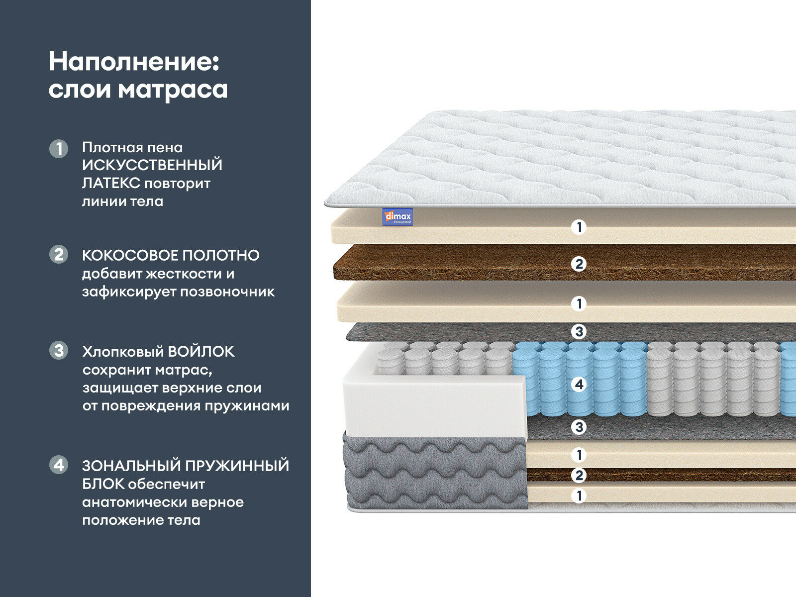 Матрас, где каждая деталь работает на ваш комфорт — от зональной поддержки до многослойного наполнения.