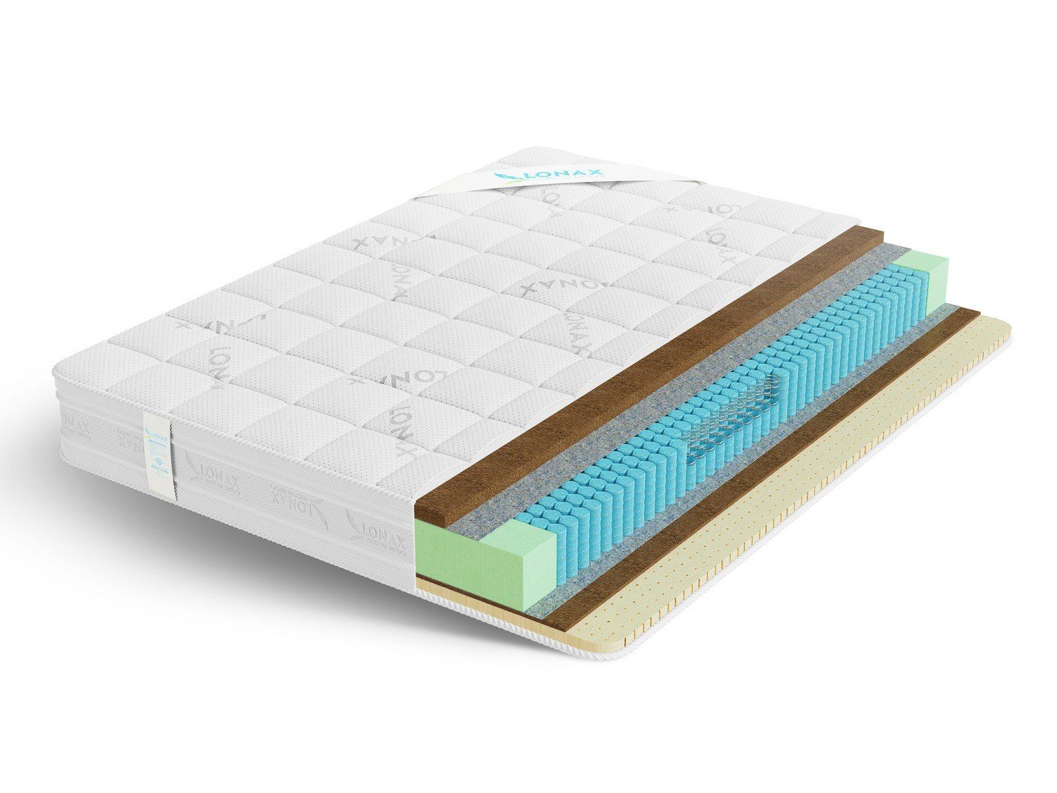 Матрас Lonax Cocos-Medium S1000 обладает разной жесткости сторон и построен на основе натуральных наполнителей.