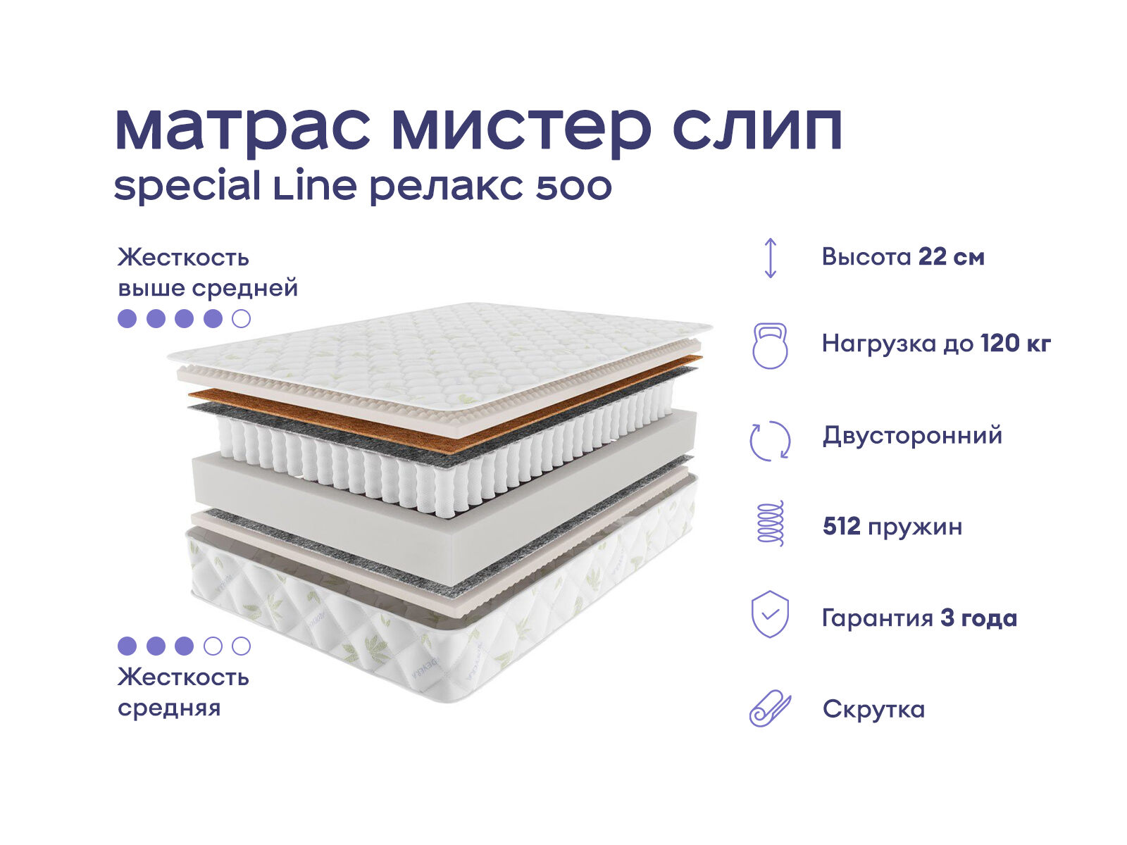 Массажный матрас с зональной поддержкой. Это практичная и удобная модель для тех, кто хочет сочетать комфортный сон с расслабляющим массажным эффектом. Разная жёсткость сторон и инновационные наполнители делают матрас универсальным выбором для большинства пользователей. Получите комфортный сон с массажным воздействием и продуманной поддержкой.