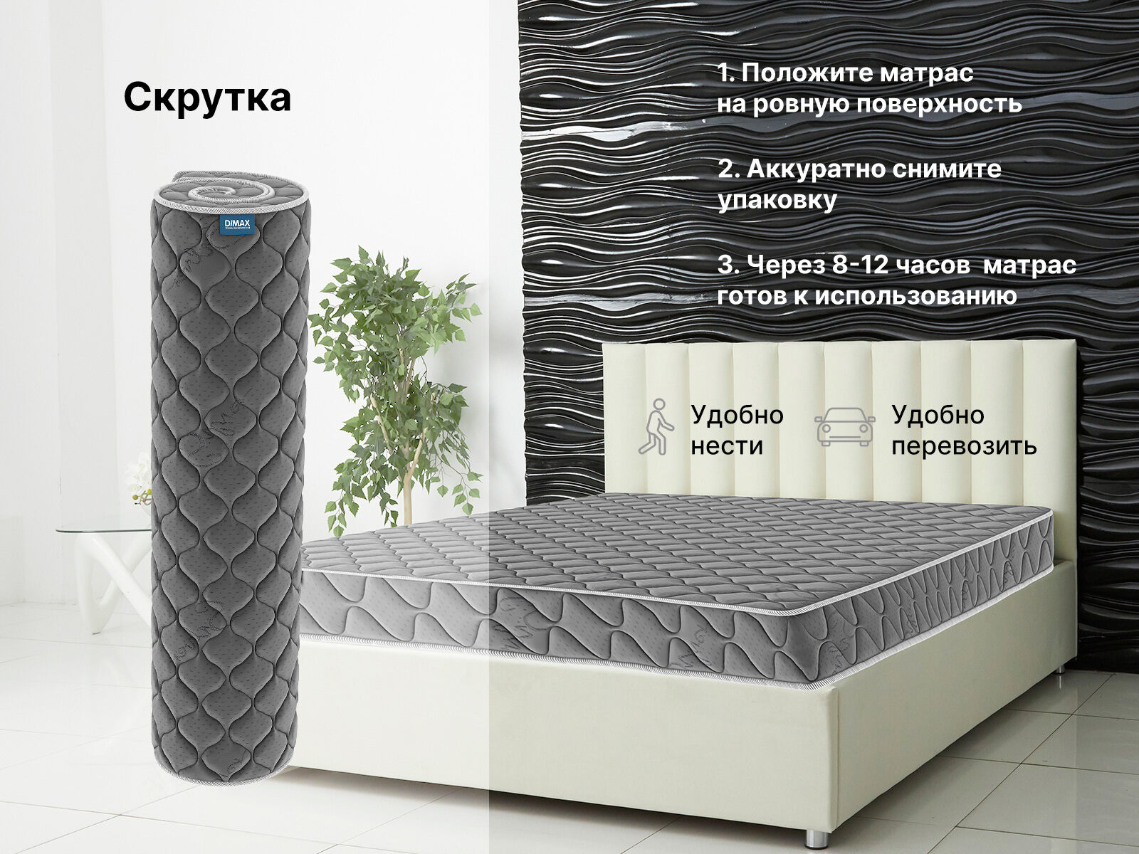 Матрас доставляется в виде рулона.