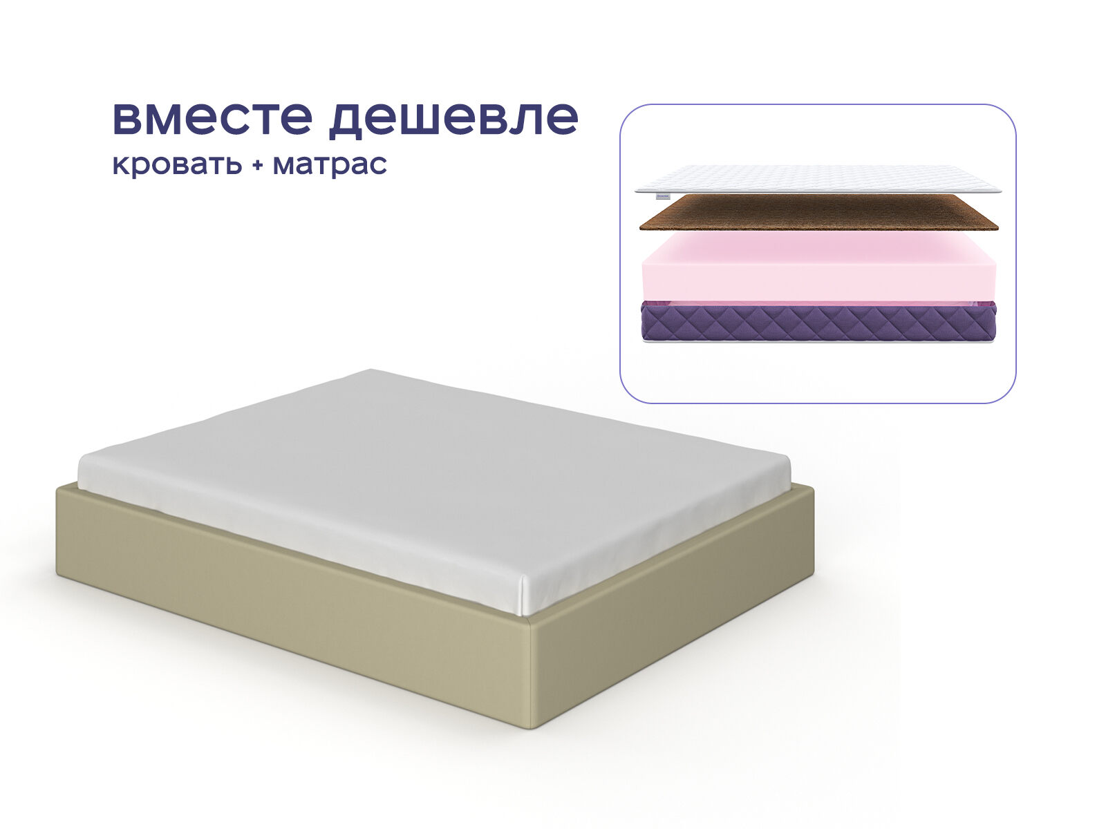 Комплект Риос + Базилик Фреш 26 Кокос — идеальное сочетание лаконичного дизайна и заботы о здоровье позвоночника. Кровать, разгружающая пространство, и беспружинный матрас с натуральной кокосовой койрой. Сэкономьте до 36% от стоимости с тандемом, который обеспечит стильный вид, экологичность и анатомически правильный сон