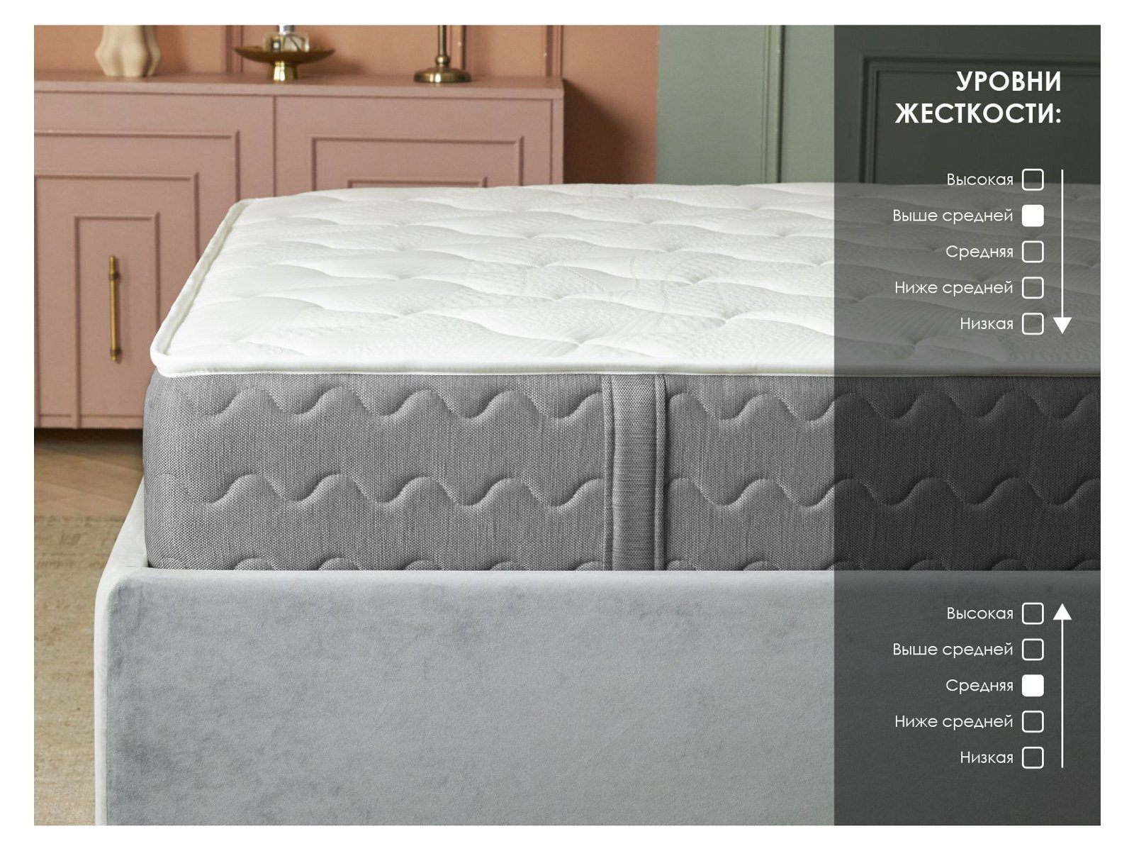Матрас сочетает зонированную поддержку независимых пружин, комфорт микромассажной пены и надёжную кокосовую койру, создавая адаптивное спальное место для здорового сна.