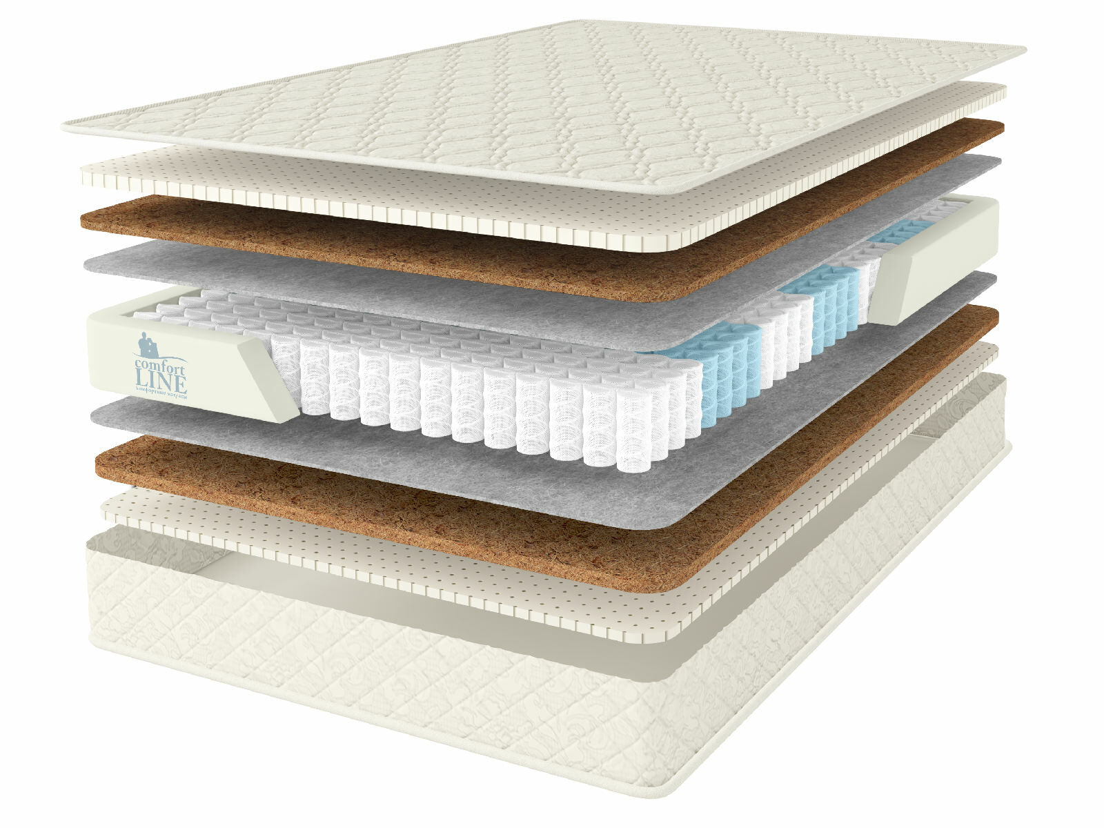 Комбинация различающихся по толщине натурального латекса и кокосовой койры с каждой из сторон придаёт матрасу дифференцируемую жёсткость. Чем больше латекса – тем мягче и адаптивнее поверхность, и напротив – чем больше кокоса, тем твёрже и плотнее матрас. Благодаря природному происхождению кокос и латекс не боятся воздействию микроорганизмов и при этом хорошо пропускают воздух. Такой матрас будет проветриваться не только снаружи, но и изнутри.