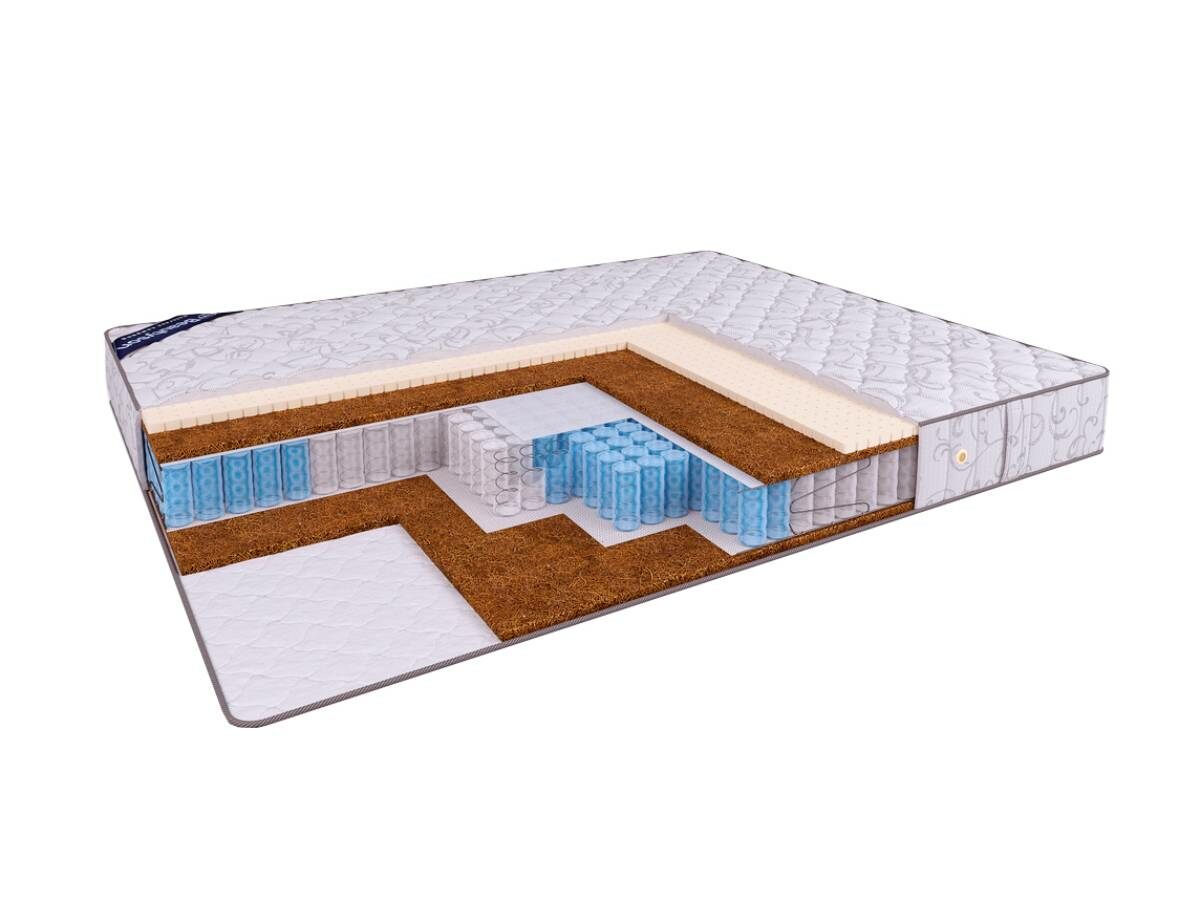 Матрас Hit VarioMed TFK+ выполнен на основе независимого пружинного блока плотностью 600 пружин на спальное место, обеспечивающего оптимальную анатомическую поддержку спящему человеку. 5 зон жёсткости пружин в матрасе соответствуют каждой зоне тела человека, обеспечивая тем самым равномерное распределение веса тела и нахождение позвоночника в естественном положении. Одним из преимуществ данной модели матраса является разная жёсткость её сторон. Вы самостоятельно можете подобрать для себя наиболее комфортную сторону переворачиванием матраса: "кокосовая" сторона является более жёсткой, а обратная сторона с поверхностным слоем натурального латекса обеспечит более мягкую поверхность и комфорт.