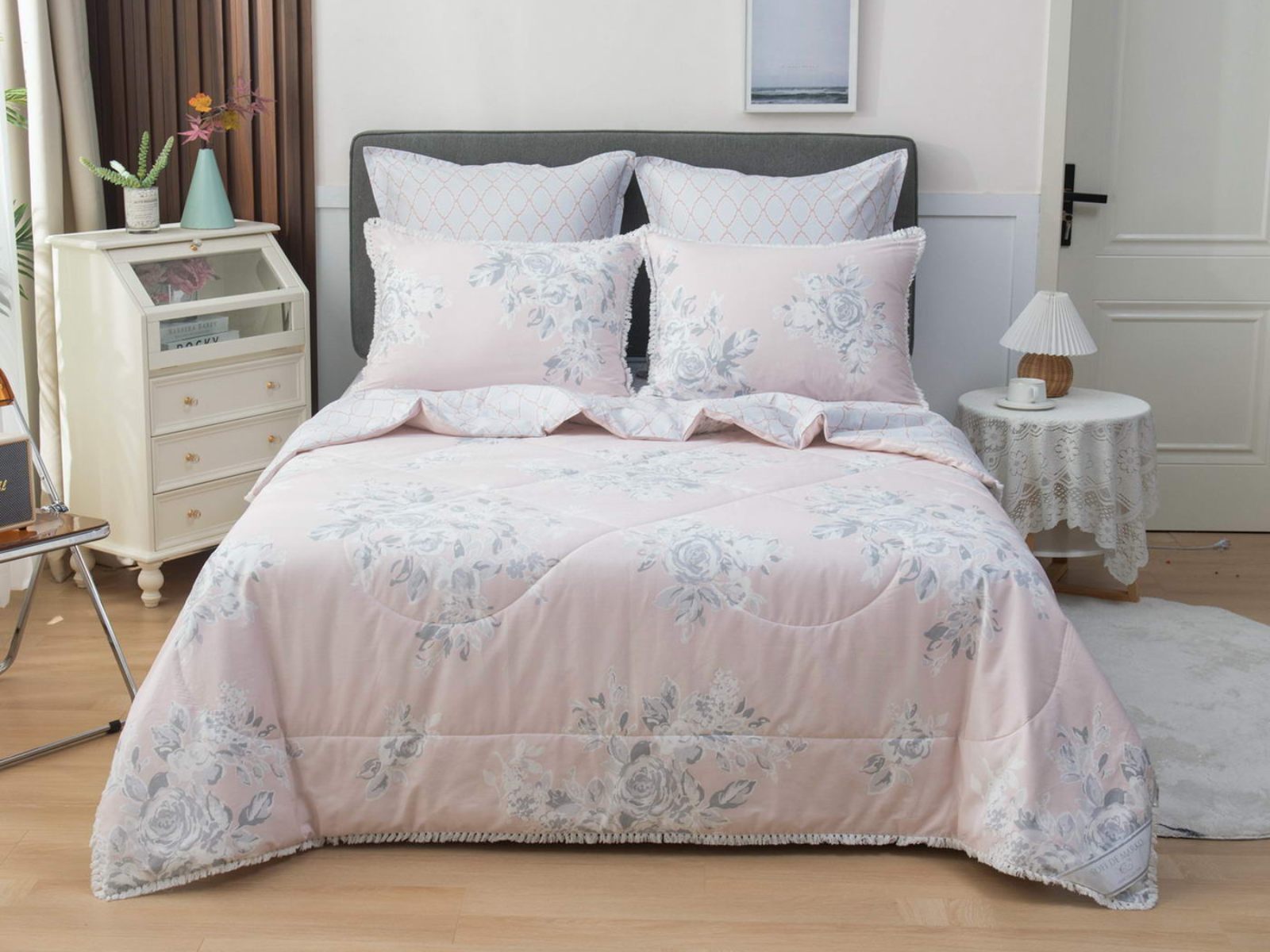 В комплекты комфортеров с одеялом Бернадетт входят наволочки, простыня и легкое всесезонное одеяло. Оцените это современное и очень удобное решение, которое идеально подходит тем, кто не любит возиться с пододеяльниками.