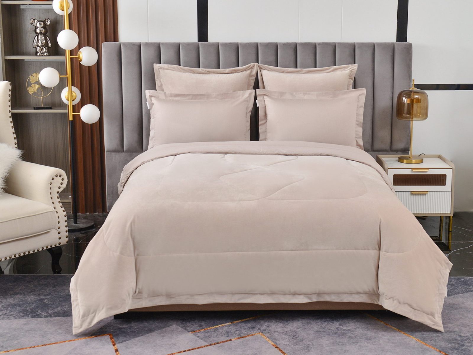 Изготовленный из качественной вискозы и мягкого хлопка трендовых цветов, комплект создаёт приятное ощущение на коже. Его экологичное наполнение из 100% эковолокна обеспечивает гипоаллергенные свойства, подарив вам спокойные и уютные ночи.