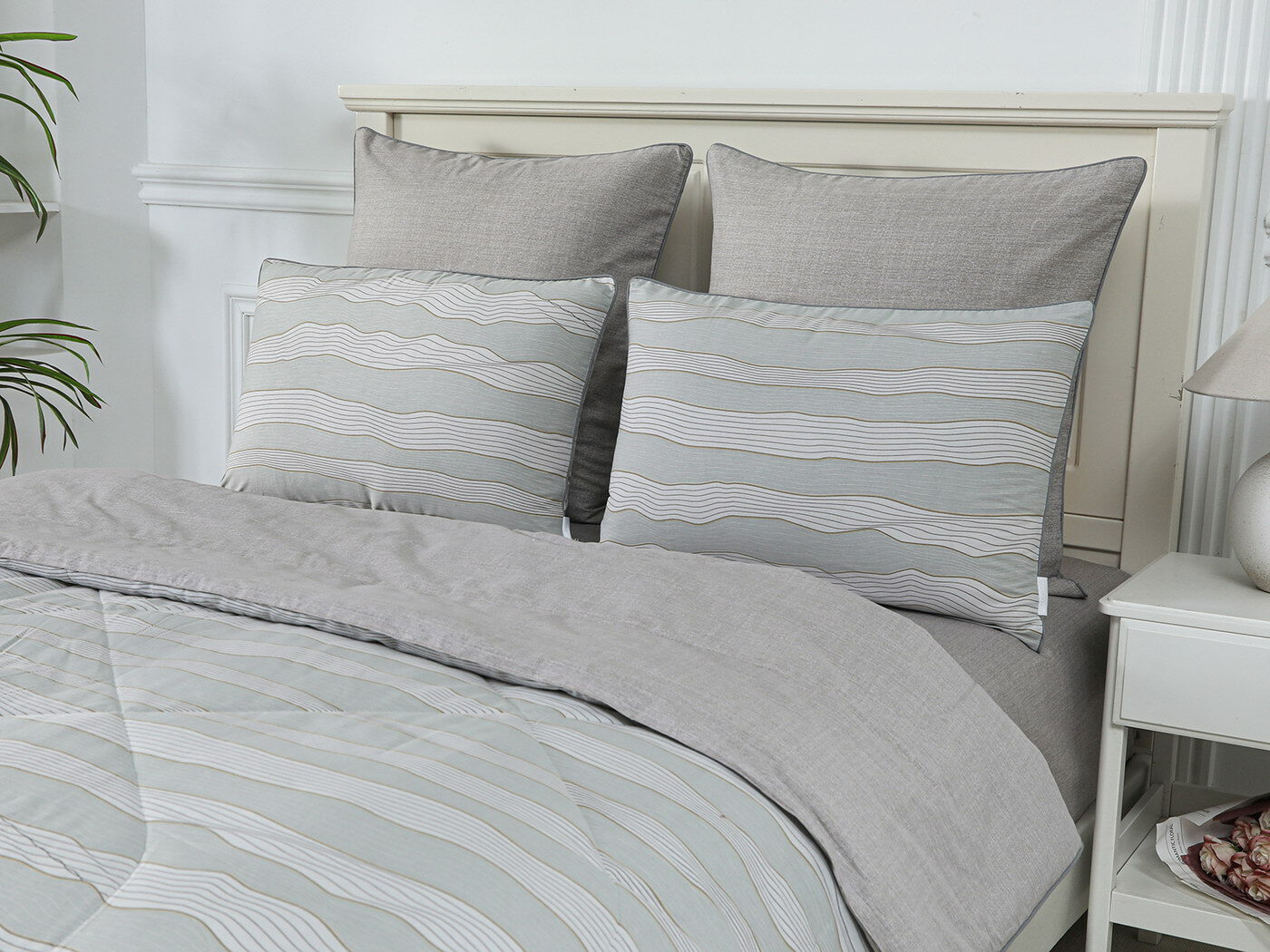 Особенность: двусторонняя модель, наволочки и одеяла декорированы кантом.