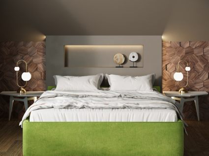 В стандартном исполнении задняя часть изголовья (спинка) выполнена в технической ткани и по желанию может быть выполнена в основной ткани (дополнительная платная опция).