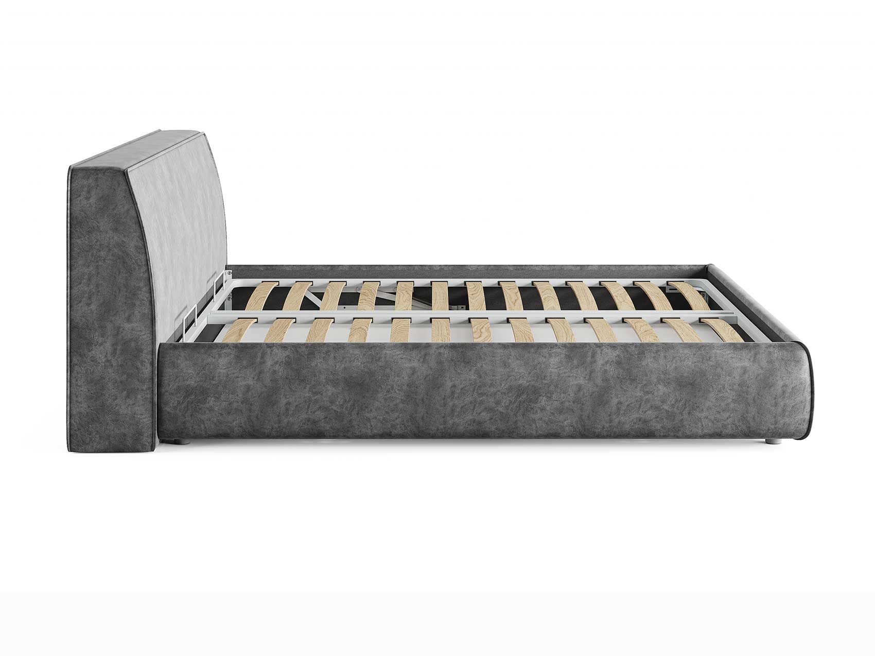 Кровать комплектуется металлическим основанием (без опор), которое имеет 13 рядов встроенных березовых ламелий на каждое спальное место, обеспечивая равномерное распределение нагрузки.