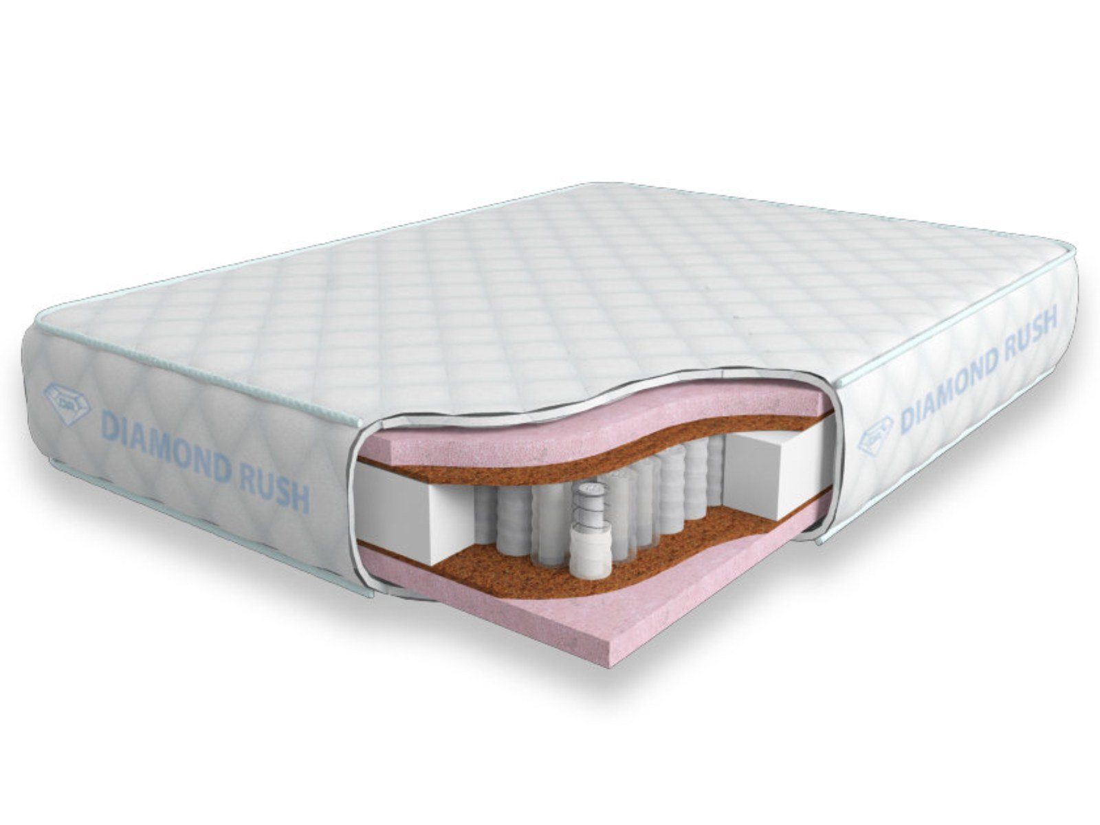 Матрас Diamond Rush Comfy Lux DP LD имеет в своей основе независимый пружинный блок DP, состоящий из сдвоенных пружин диаметром 3-4 и 5-6 см. В качестве настилочных слоев поверх пружинного блока используются Меморикс (материал с эффектом памяти) и латексированная кокосовая койра. Такой матрас имеет среднюю (ближе к мягкой) жесткость с обеих сторон. Вся эта конструкция одета в качественный чехол из трикотажа. Эта ткань безопасна для кожи, не боится стирки и химчистки.