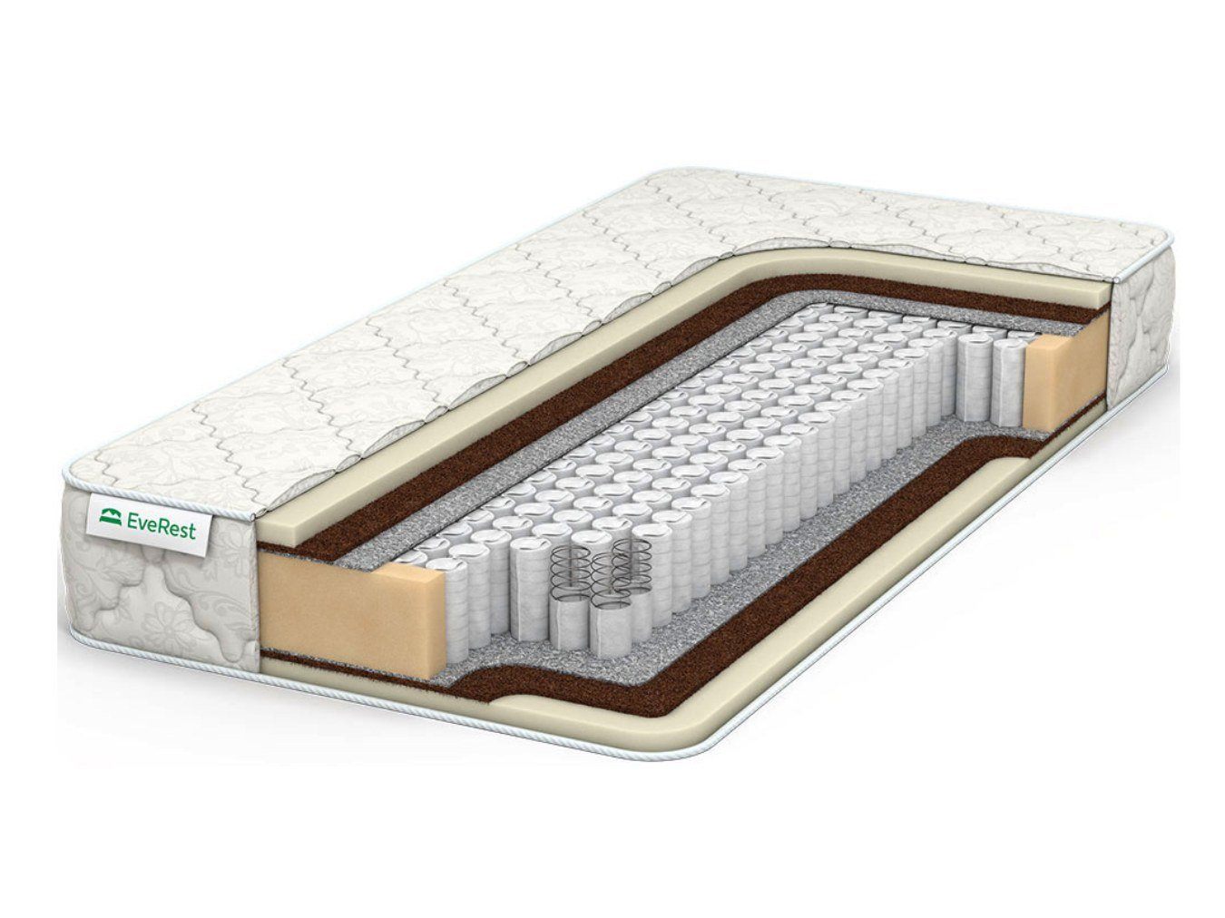 У поверхностей модели установлена комбинация таких материалов как ППУ и койра кокоса. Мягкая пена и жёсткая плита создают идеальный союз для комфорта человека. ППУ даёт анатомичность и возможность адаптации под фигуру, а кокос максимально физиологично удерживает спину человека. Позвоночник на таком материале всегда получит самую правильную опору.