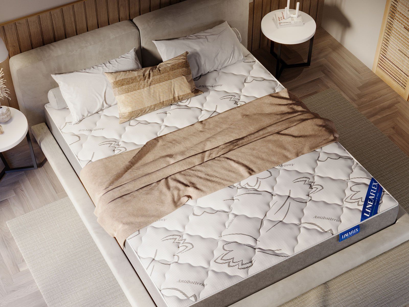 Матрас получит особо комфортный чехол. Обивка конструируется из трёх материалов: трикотаж ANTIBATTERICO из бамбукового волокна, пышный 300 гр холлофайбер для стёжки и слой ERGOFLEX, призванный смягчить рабочие поверхности матраса.