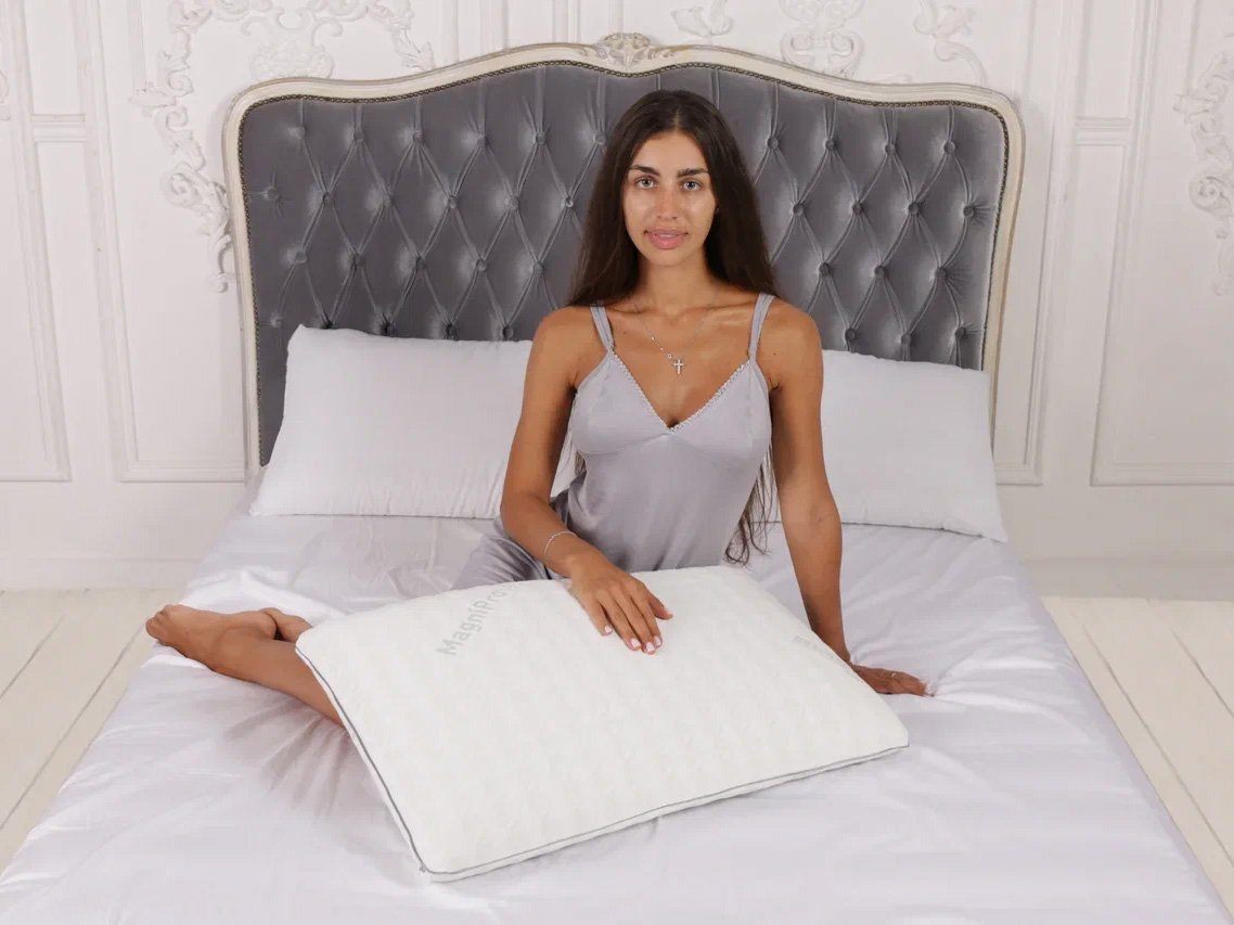 Изделие поставляется в фирменной сумке с ручками от бренда Magniflex. В таком виде подушка станет приятным и стильным подарком для близких и друзей.