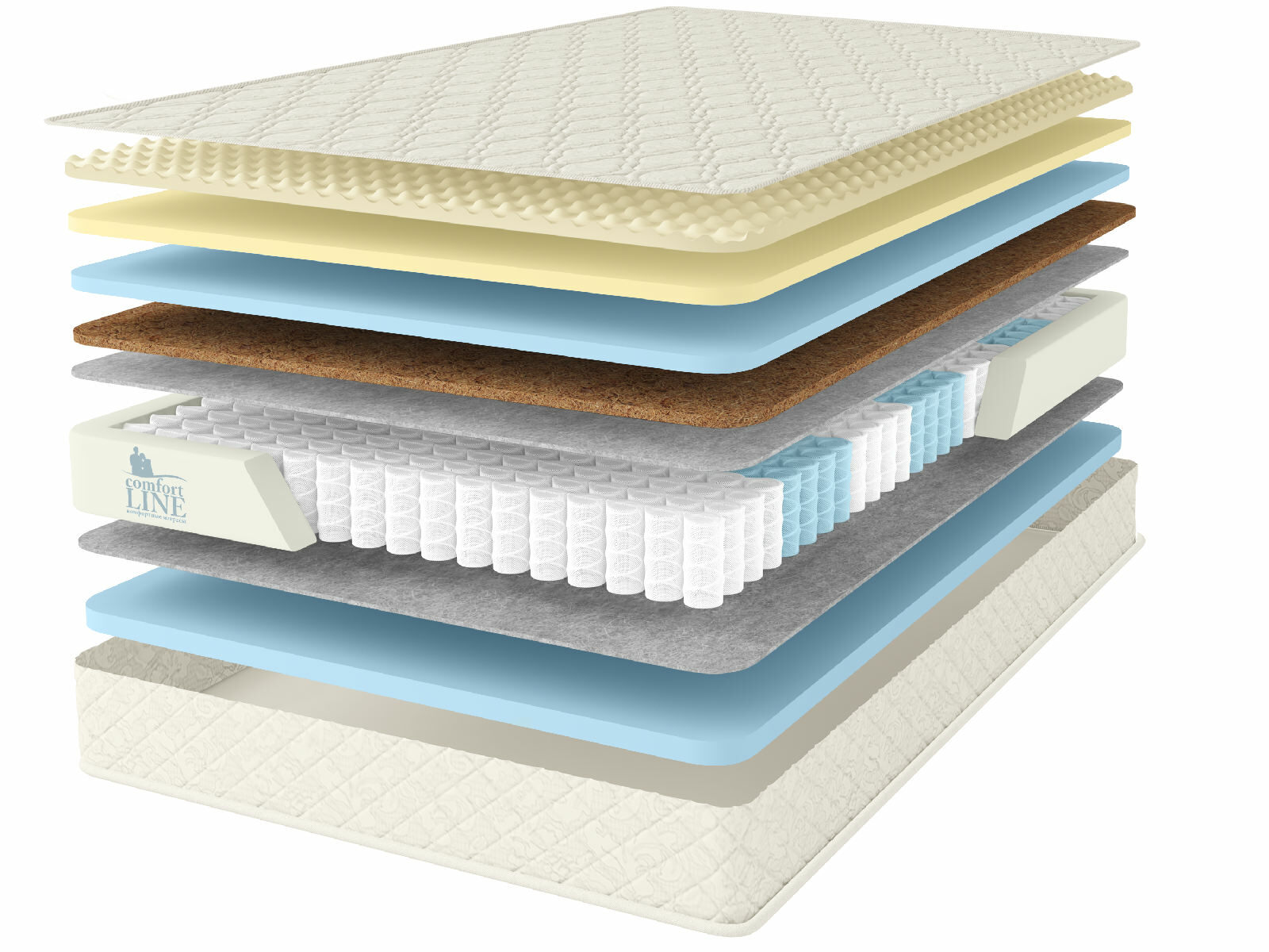 Кокосовое волокно с натуральным латексом придает жесткость, экологически чистый материал, который прекрасно вентилируется.