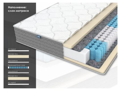 Пружинный матрас Матрас ОК Мемо – это очень мягкая и комфортная модель, обладающая памятью формы. Такое изделие подойдёт ценителям максимального уюта. Если вы предпочитаете, чтобы спальное место имело невероятную мягкость, то эта модель для вас.
