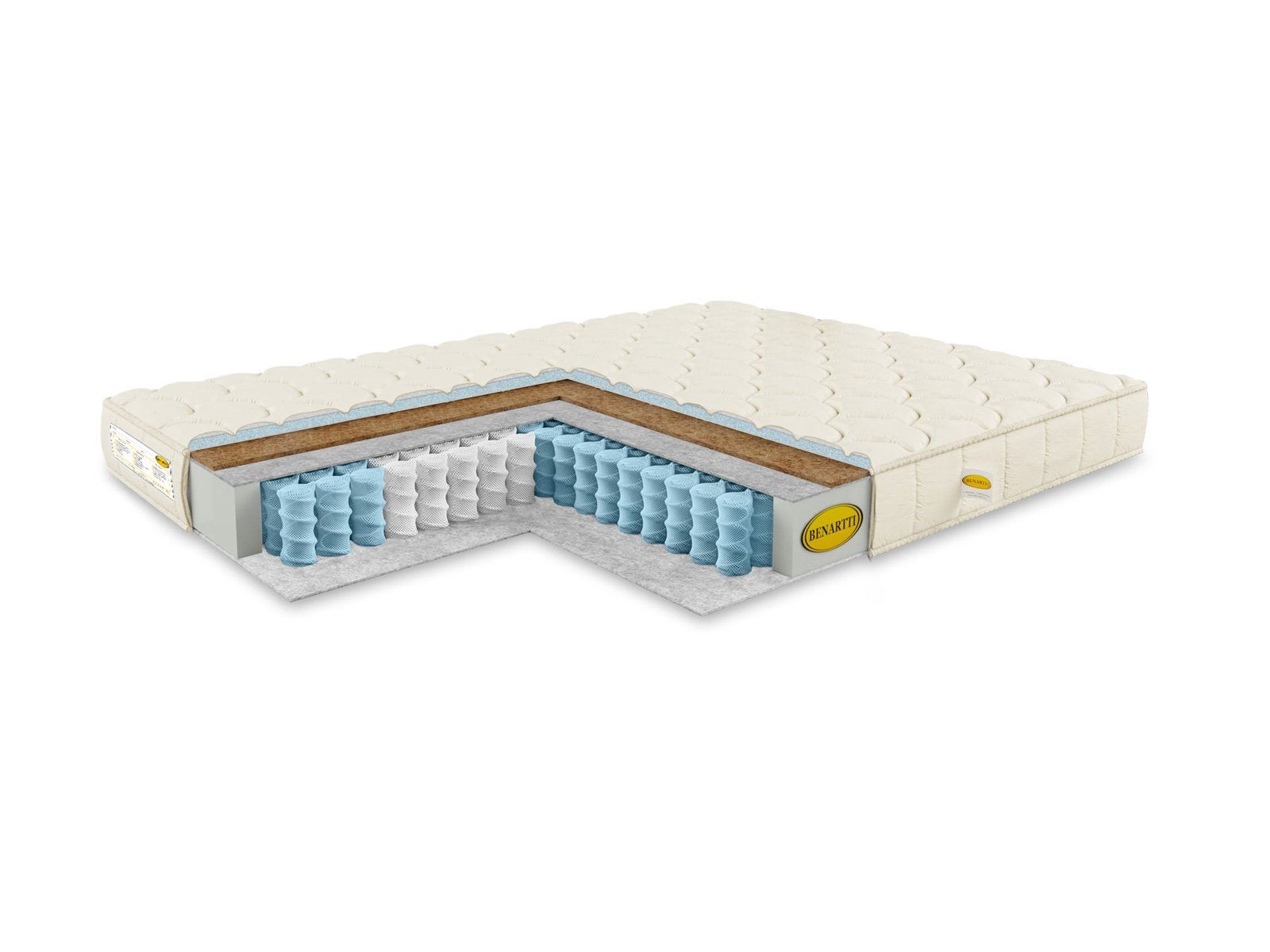 С одной из сторон для большей плотности и жёсткости поверхности устанавливается плита кокосовой койры. Этот наполнитель отлично усиливает ортопедические свойства матраса, поэтому поверхность приобретает ещё более выраженную поддержку.