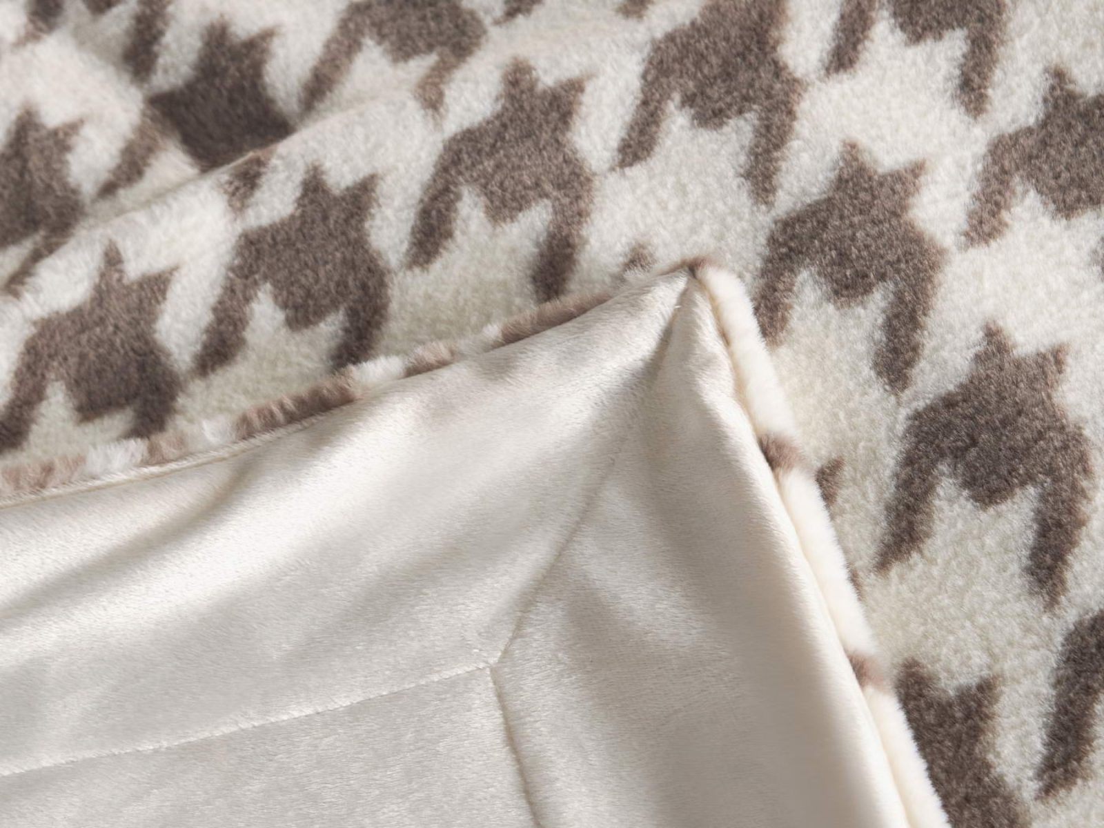 Sofi De Marko представляет вашему вниманию коллекцию Эрнесто, включающую в себя пледы и декоративные наволочки из искусственного меха с принтом «гусиная лапка».