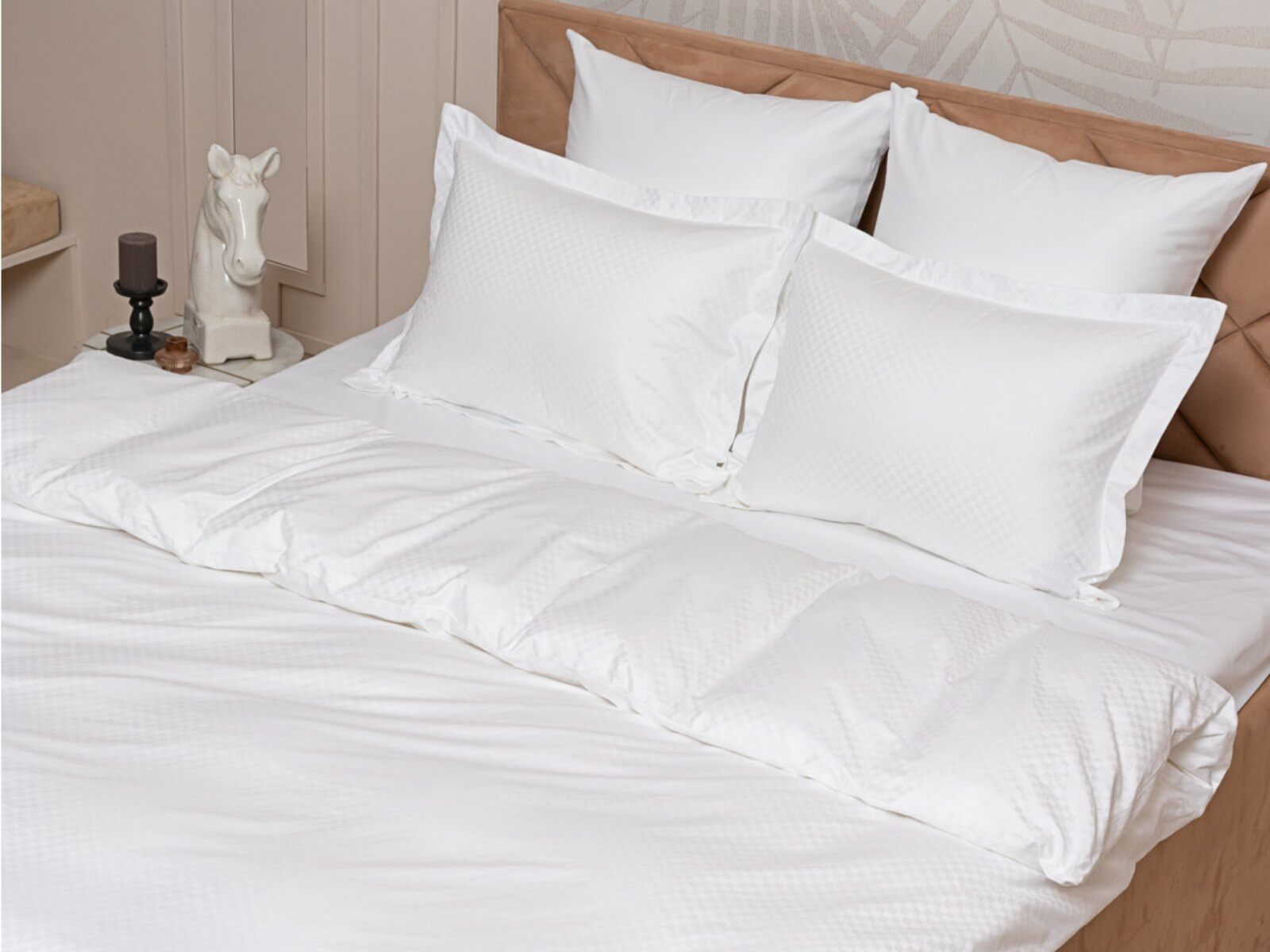 Постельное белье Palette Grass — это, прежде всего, качественные натуральные жаккардовые ткани, при производстве которых используется дополнительное кручение пряжи. Благодаря этому приему постельное белье дольше сохраняет превосходный внешний вид и дарит ощущение прохлады летом и уюта зимой. Все комплекты шьются из тканей “компаньонов” одного цвета и имеют пододеяльник(и), простынь, и наволочки, которые комплектуются в фирменную коробку с логотипом. Стирка при температуре до 40С°