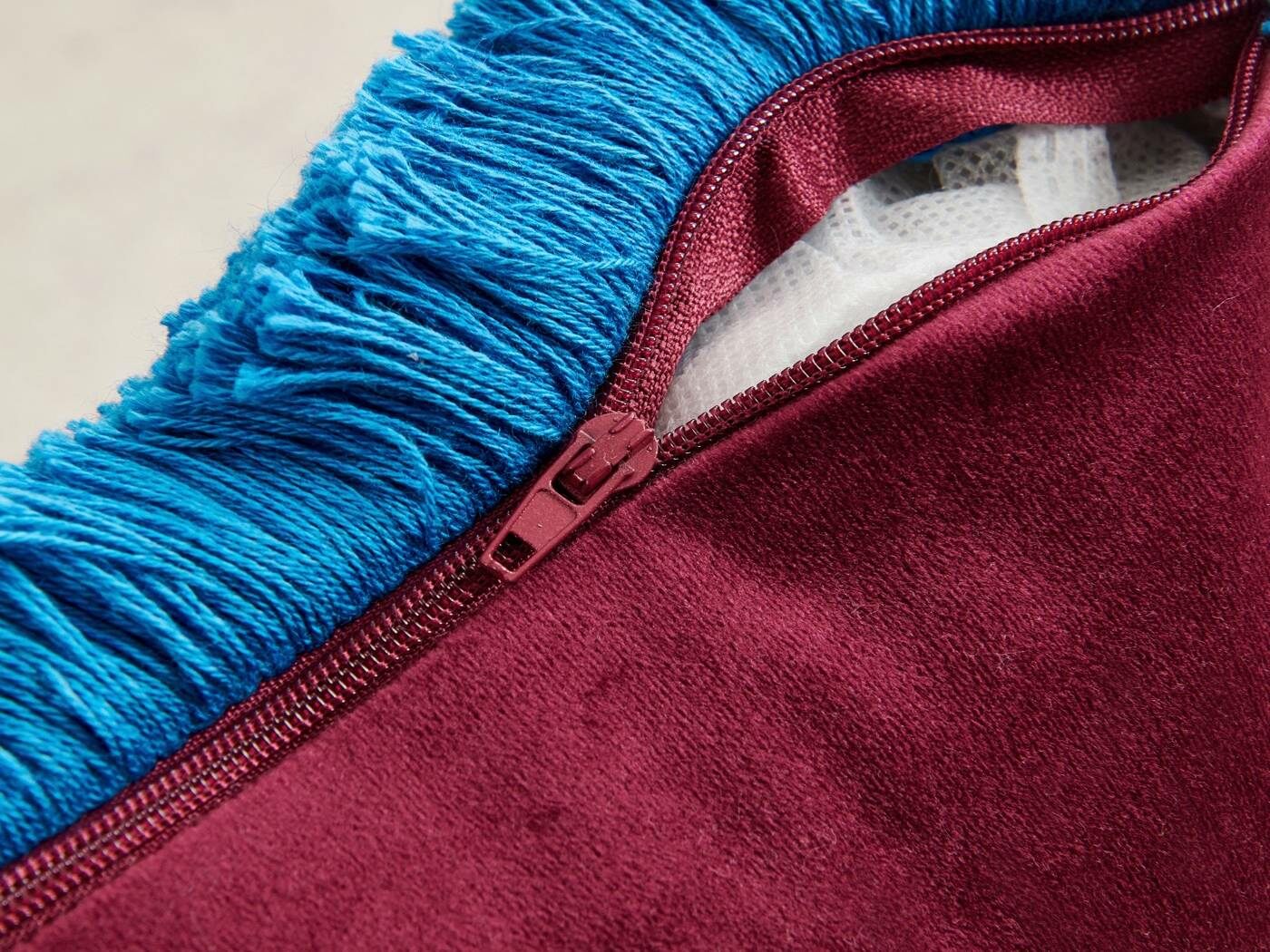 Особенность : с бахромой, потайная молния под цвет вшита в край наволочки.