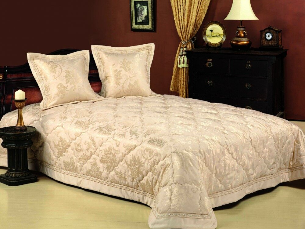 Это роскошное покрывало способно очаровать с первого взгляда: золотистые виноградные листья перенесут частичку солнечной Италии к Вам в спальню. Элегантная, безукоризненно выполненная вышивка подчеркивает классический стиль дизайна, превращая любую обстановку в королевскую спальню.