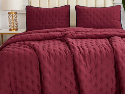 Двусторонние стеганные покрывала Броуди легкие и прочные. В комплект входят покрывало и одна либо две наволочки (50х70 см) из аналогичного материала в зависимости от размера. При желании покрывало можно использовать как легкое одеяло.