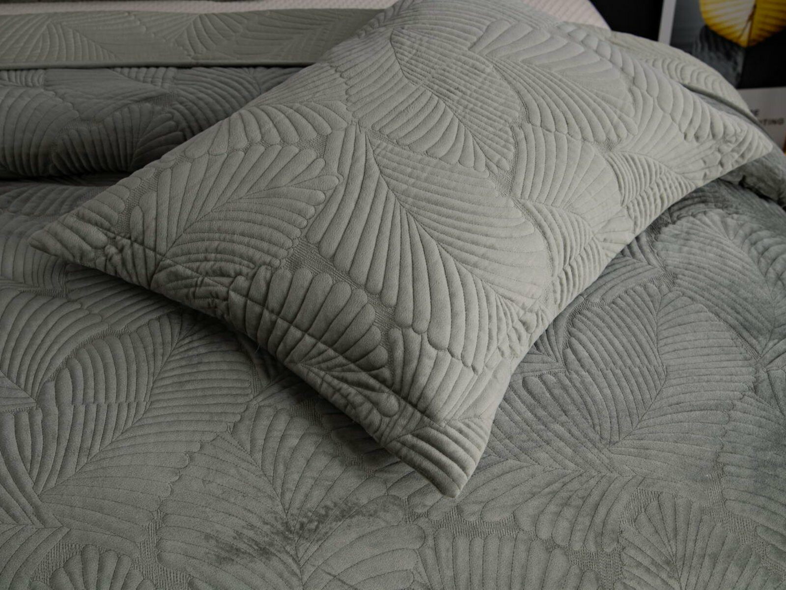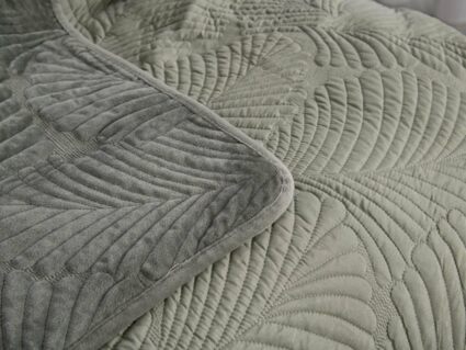 На создание велюрового покрывала Ноэль наших дизайнеров вдохновила ночь в середине лета, когда на раскаленную от жары землю спускается долгожданная прохлада. Роскошная вышивка в виде пальмовых листьев будет напоминать о тени, которую отбрасывают деревья.
