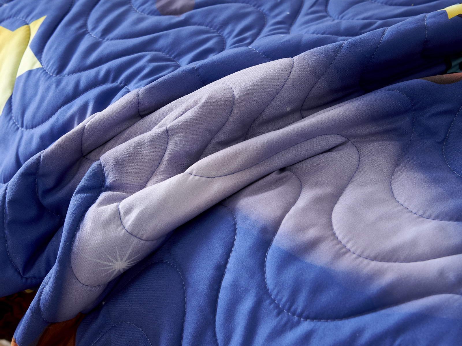 Покрывала коллекции «Sunny day» не только украшают комнату, но и защищают постель от грязи и пыли. А если маленькому хозяину станет холодно, теплое покрывало согреет его. Покрывала сделаны из хлопка и вискозы, хлопок хорошо согревает, а вискоза помогает изделию держать форму.