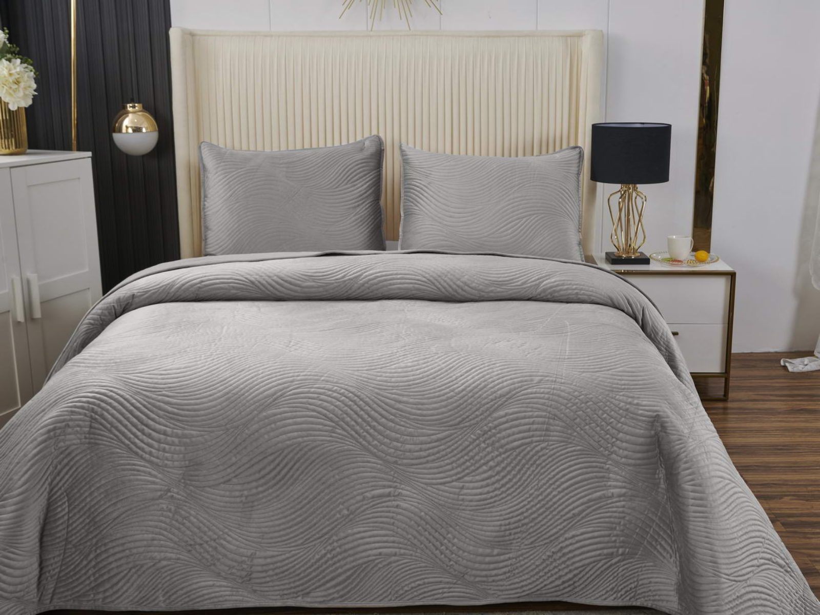 Традиционно в японском саду камней линии на песке символизируют отсутствие хаоса и спокойствие. Такой плавный узор напоминает размеренные потоки воды, которые оказывают на психику благоприятный эффект. Изящное покрывало Жизель с рисунком в виде подобных линий поможет обрести умиротворение, ведь в современном мире так важно уметь привести мысли в порядок. Помимо положительного воздействия на нервную систему, рисунок в виде волны придаст изысканности и утонченности Вашему интерьеру.