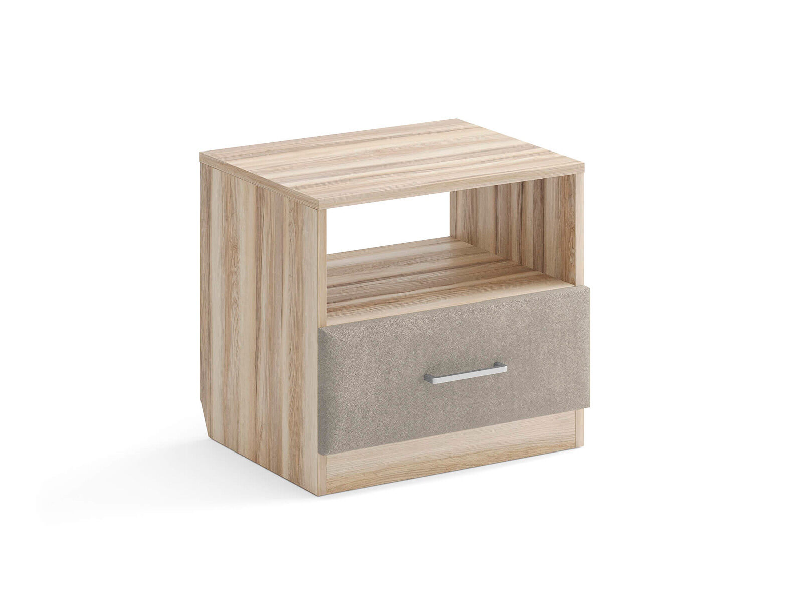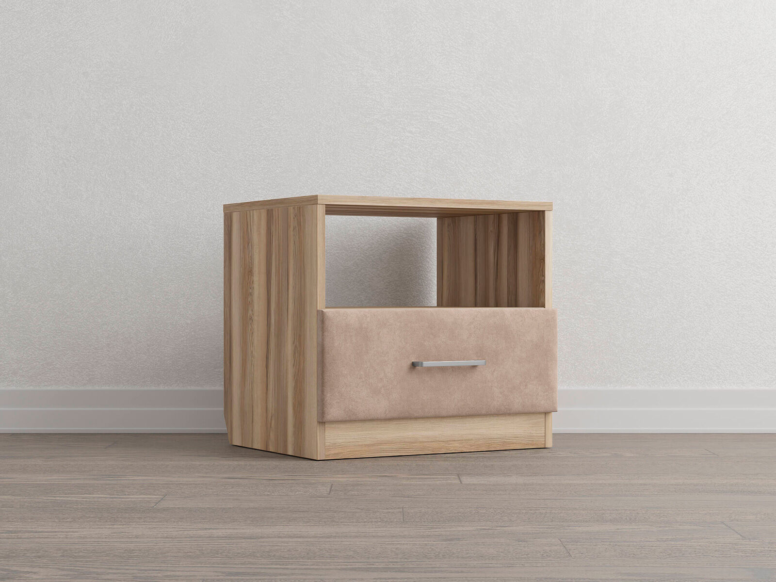 Элегантная комбинированная тумба, сочетающая в себе лаконичность ЛДСП и уют мягких фасадов ящиков, обтянутых тканью. Конструкция тумбы предусматривает открытую нишу для мелочей и вместительный выдвижной ящик с направляющими скрытого монтажа и доводчиками. Корпус из ЛДСП гарантирует долговечность и устойчивость к механическим повреждениям, а мягкие фасады в ткани и изящные металлические ручки добавят уют. Большое разнообразие текстур и цветовых решений для гармоничной интеграции в любой интерьер.